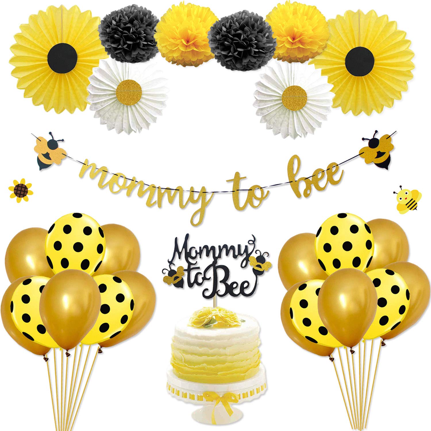 Amazon Com Bumblebee Party Decoration Bumble Bee Balloons For Honey Bee Themed Birthday Party Bumble Bee Baby Shower Decoration Mommy To Bee Gold Glitter Banner And Cake Topper For Baby Shower Supplies Toys from m.media-amazon.com 5 out of 5 stars. Bumble bee party decorations,bee birthday balloons,bee theme,baby shower decor,birthday decorations,party supplies,confetti balloons. Mama to bee decorations kit with 5 hexagons/bee theme/bee decorations/mama to bee banner/balloon garland kit/balloon arch kit/baby shower. This theme is perfect for a baby shower or even a child's birthday party. The mother to be will bee overjoyed with our bumble bee baby shower decorations. Bright yellow contrasted with black, honeycomb or striped patterns, and sweet honey flavors are all great ways to bring the bee theme to life. 0 out of 5 stars, based on 0 reviews current price $13.99 $ 13. The bright yellow, black, and white colors will create a vibrant and fun atmosphere.
